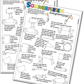 Sommerferien-Autogrammjagd – Das perfekte Kennenlernspiel für den Schulstart Kurzbeschreibung: Mit dieser liebevoll gestalteten Autogrammjagd bringen Sie Schwung, Lachen und Gesprächsstoff in den ersten Schultag nach den Ferien. Die sommerlichen Fragen mit witzigen und überraschenden Aufgaben laden die Kinder dazu ein, miteinander ins Gespräch zu kommen und mehr über die Erlebnisse
