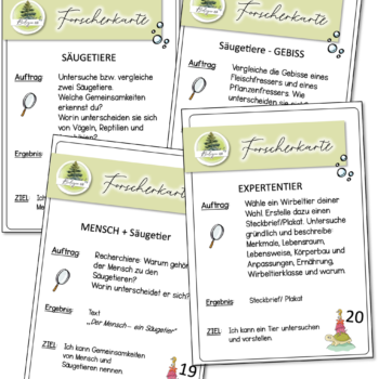 WIRBELTIERE – Forscherkarten: offenes Lernen