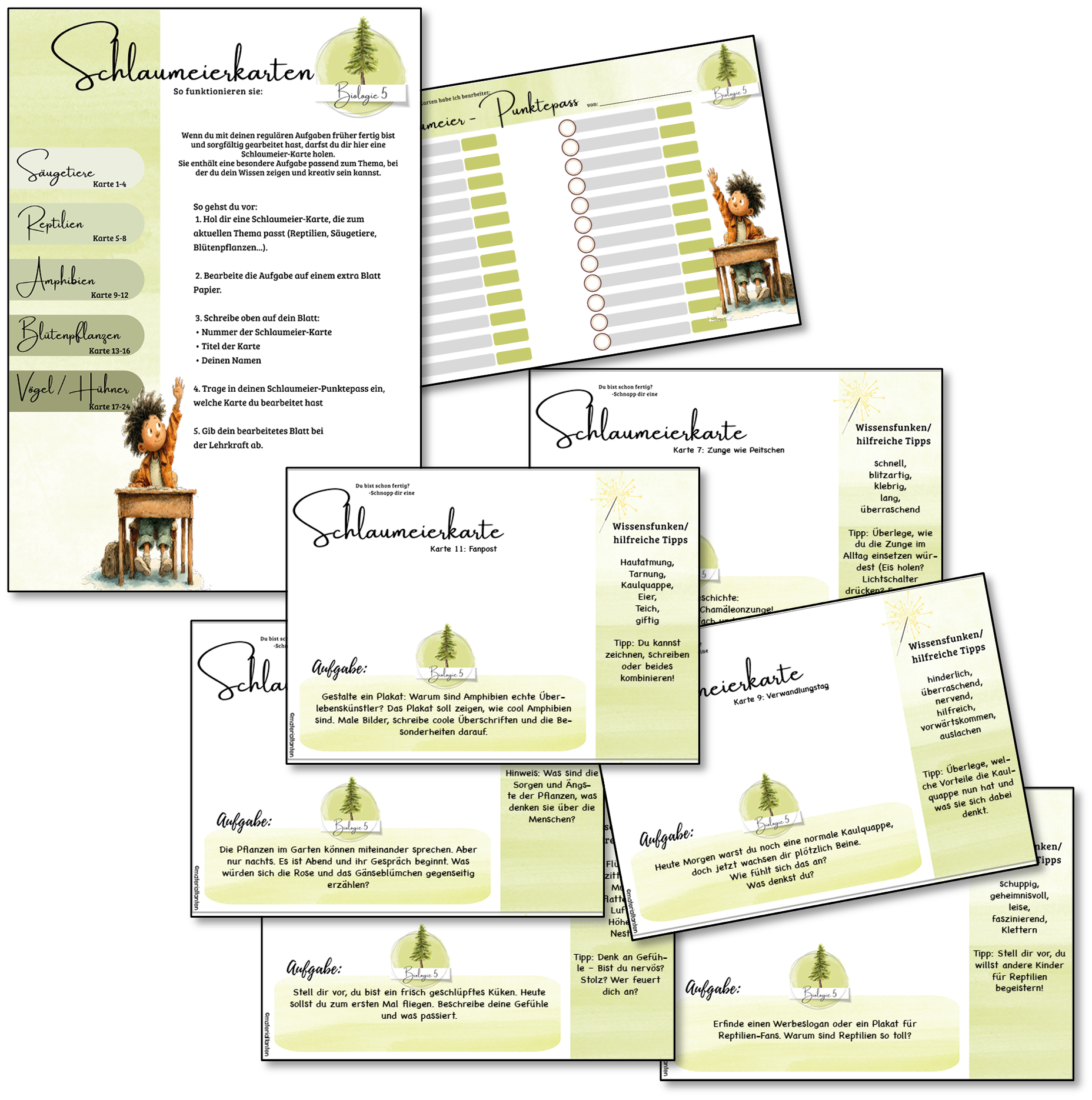 Die Schlaumeier-Karten sind schriftlich zu bearbeitende, kreative Aufgabenformate, die naturwissenschaftliches Lernen mit Sprache, Denken und Forscherlust verbinden.
