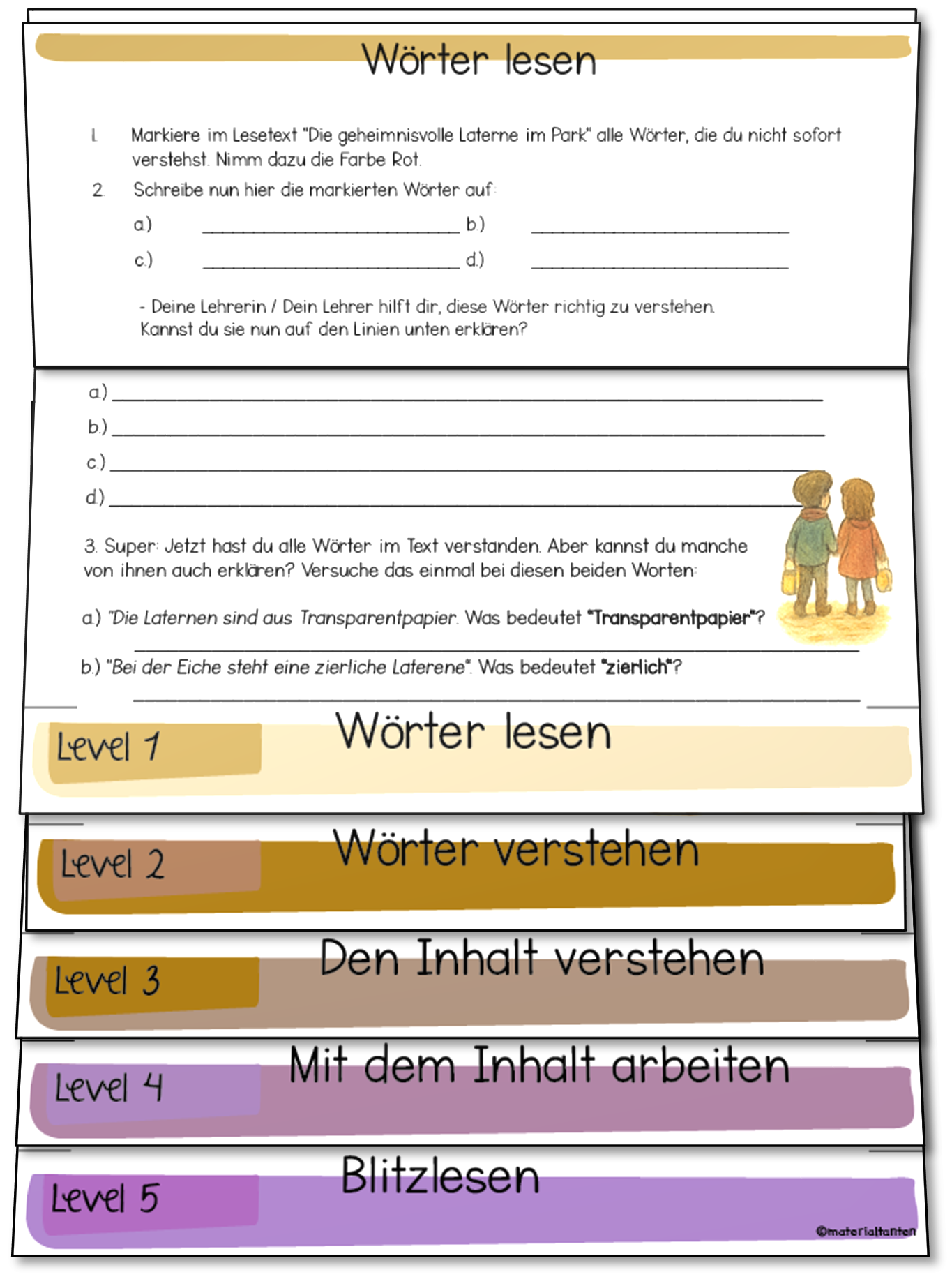 •Level 3 – Den Inhalt verstehen: Fragen zum Text beantworten und das Leseverständnis sichern.