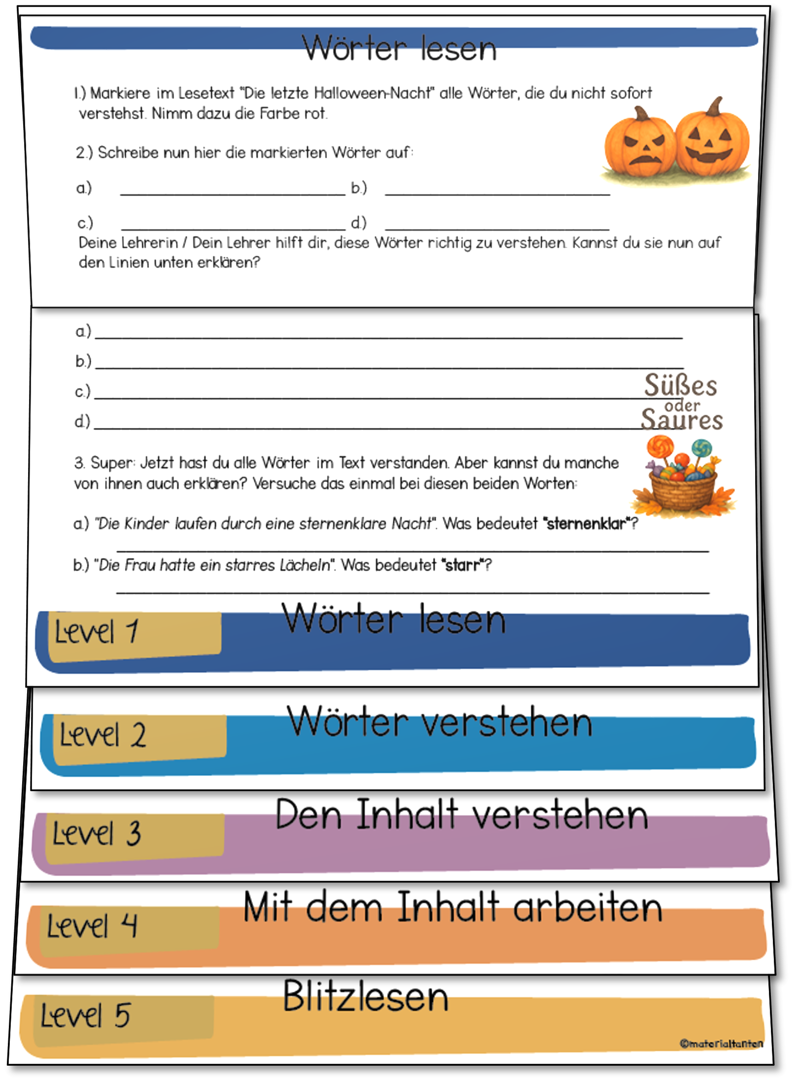 •Level 3 – Den Inhalt verstehen: Fragen zum Text beantworten und das Leseverständnis sichern.