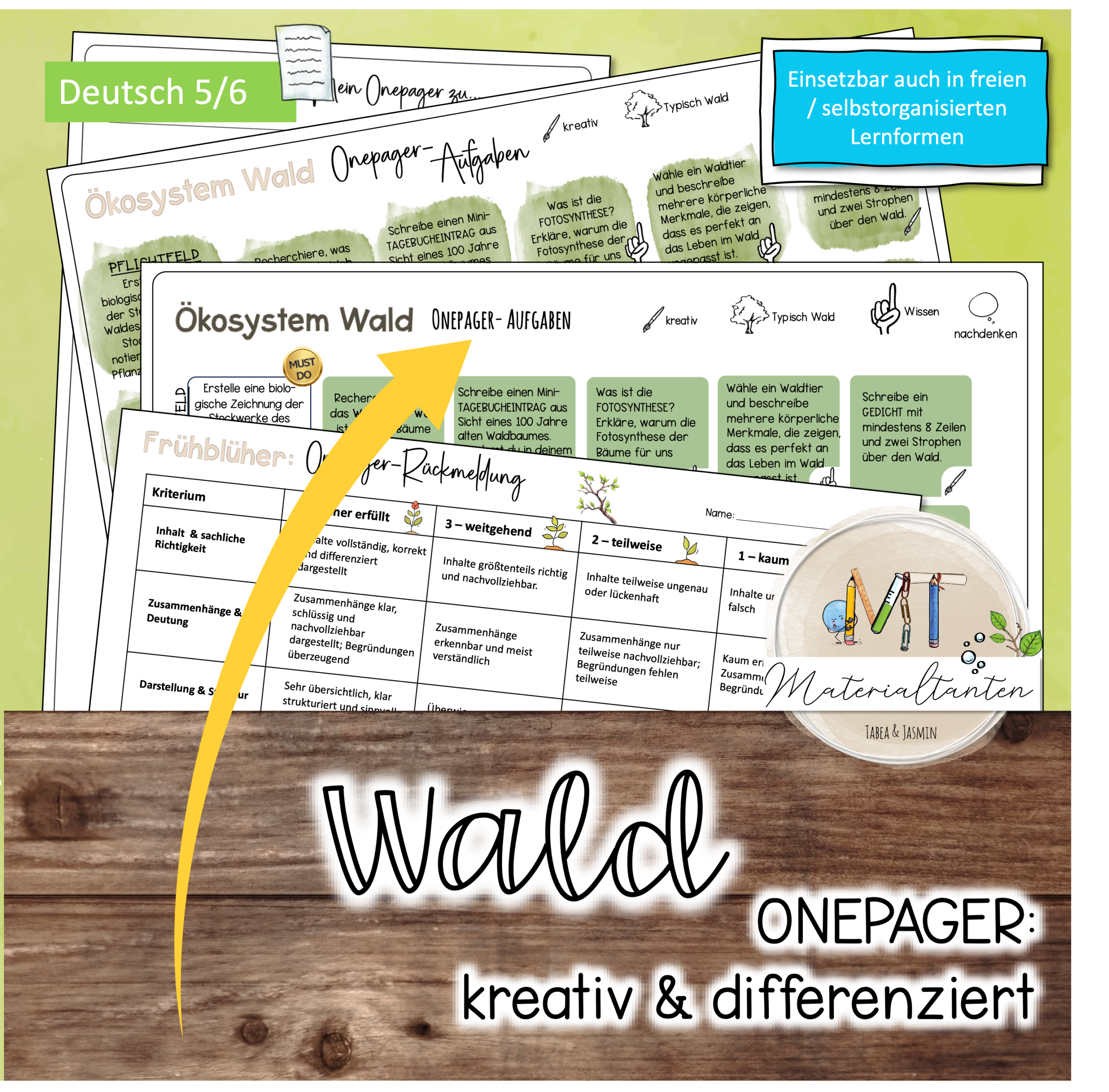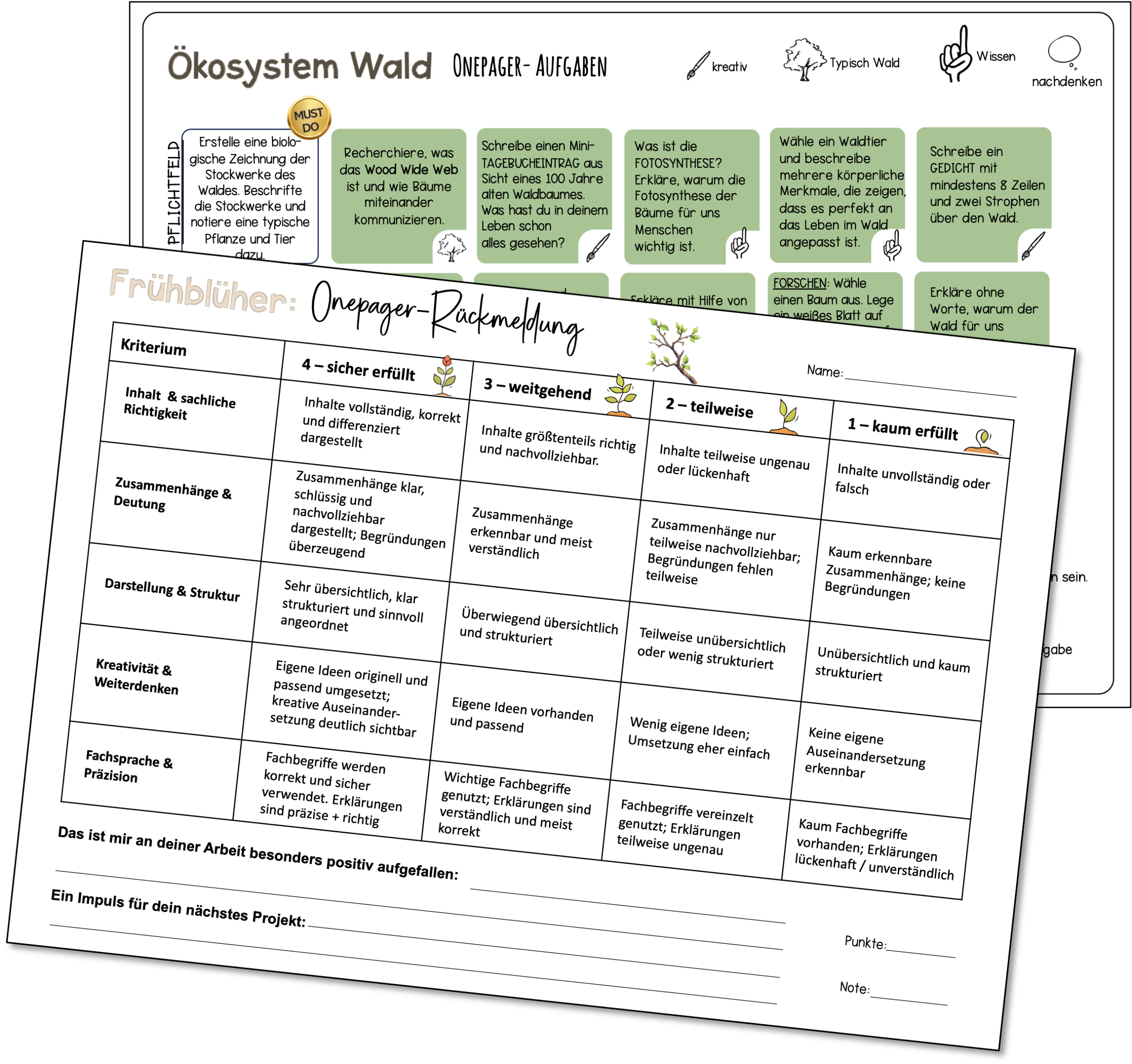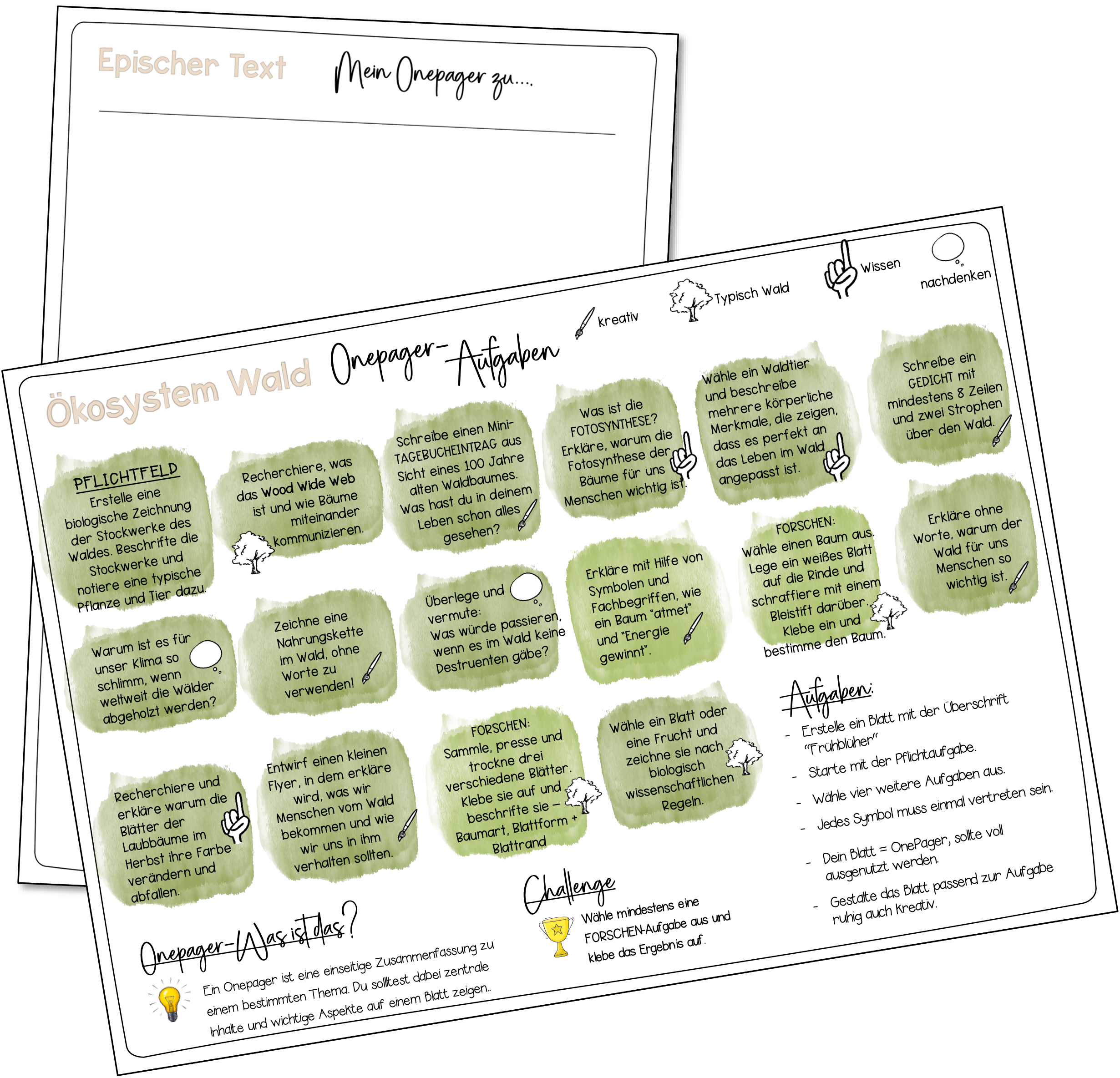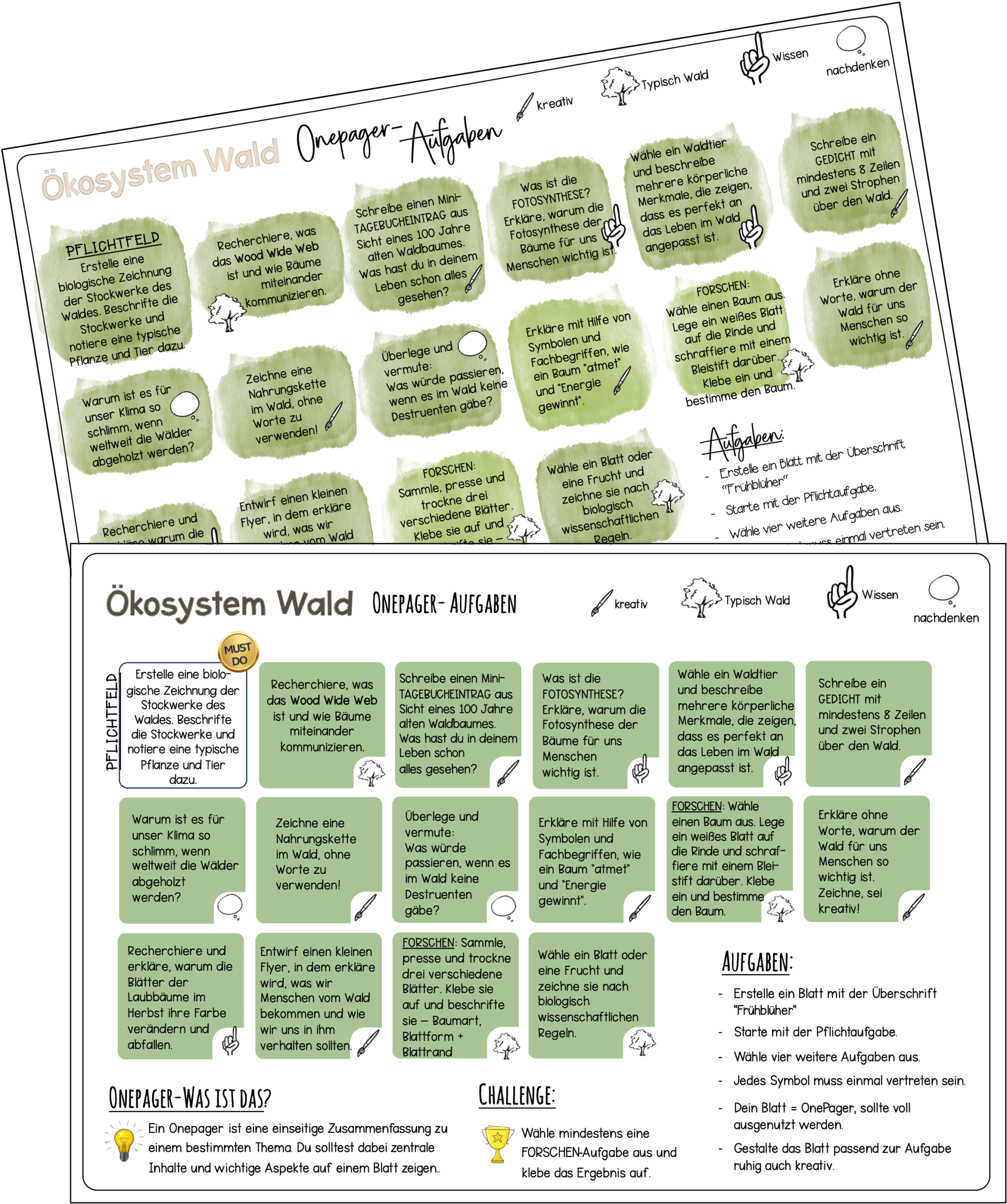 Tipp:Dieses Material ist das ideale „Dream-Team“ in Kombination mit unserem Selbstlernheft Wald. Das Heft liefert den fachlichen Input – der Onepager macht das gelernte Wissen sichtbar!