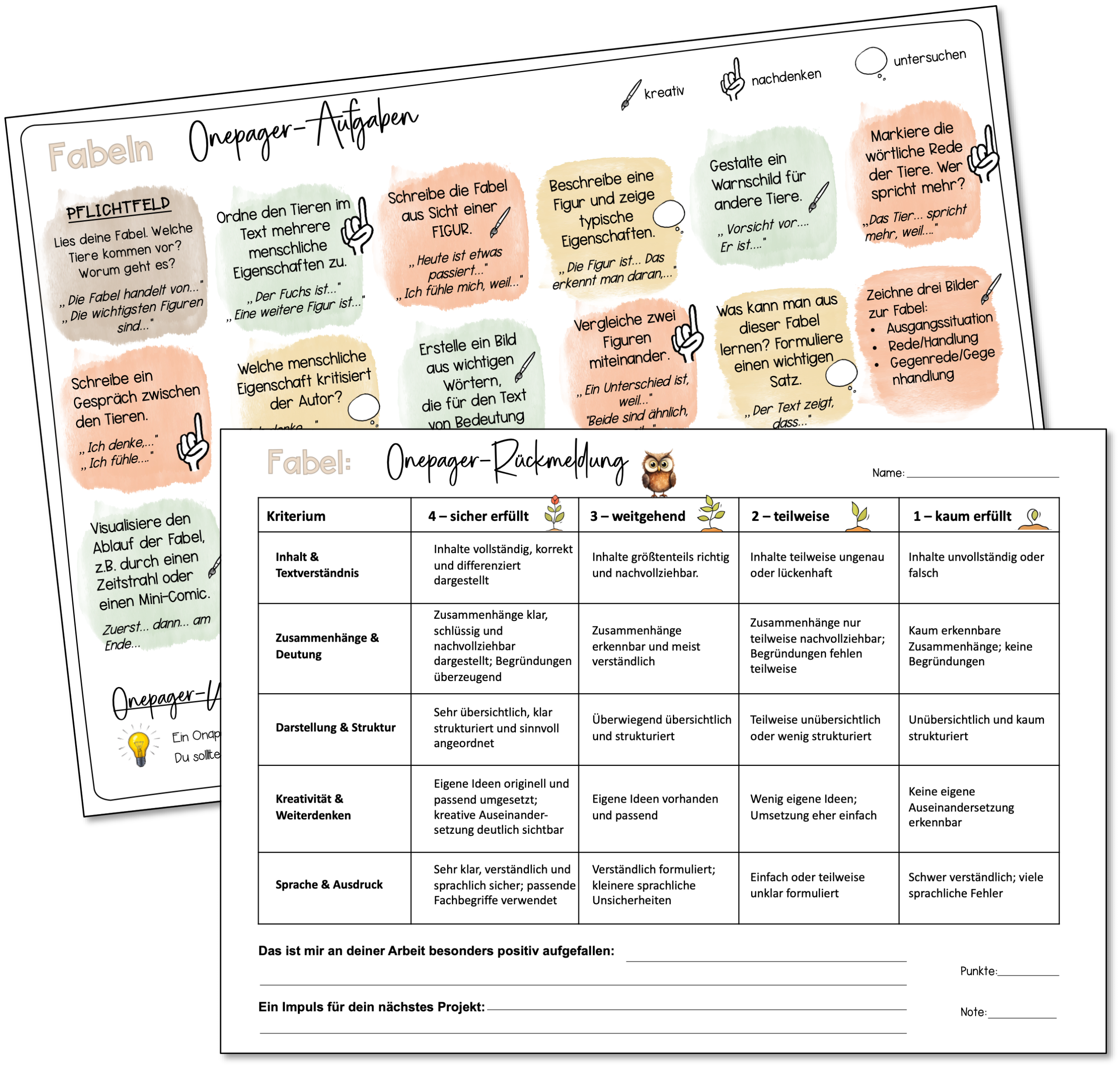 Onepager im Deutschunterricht – FABLEN kreativ & differenziert (Sek1)