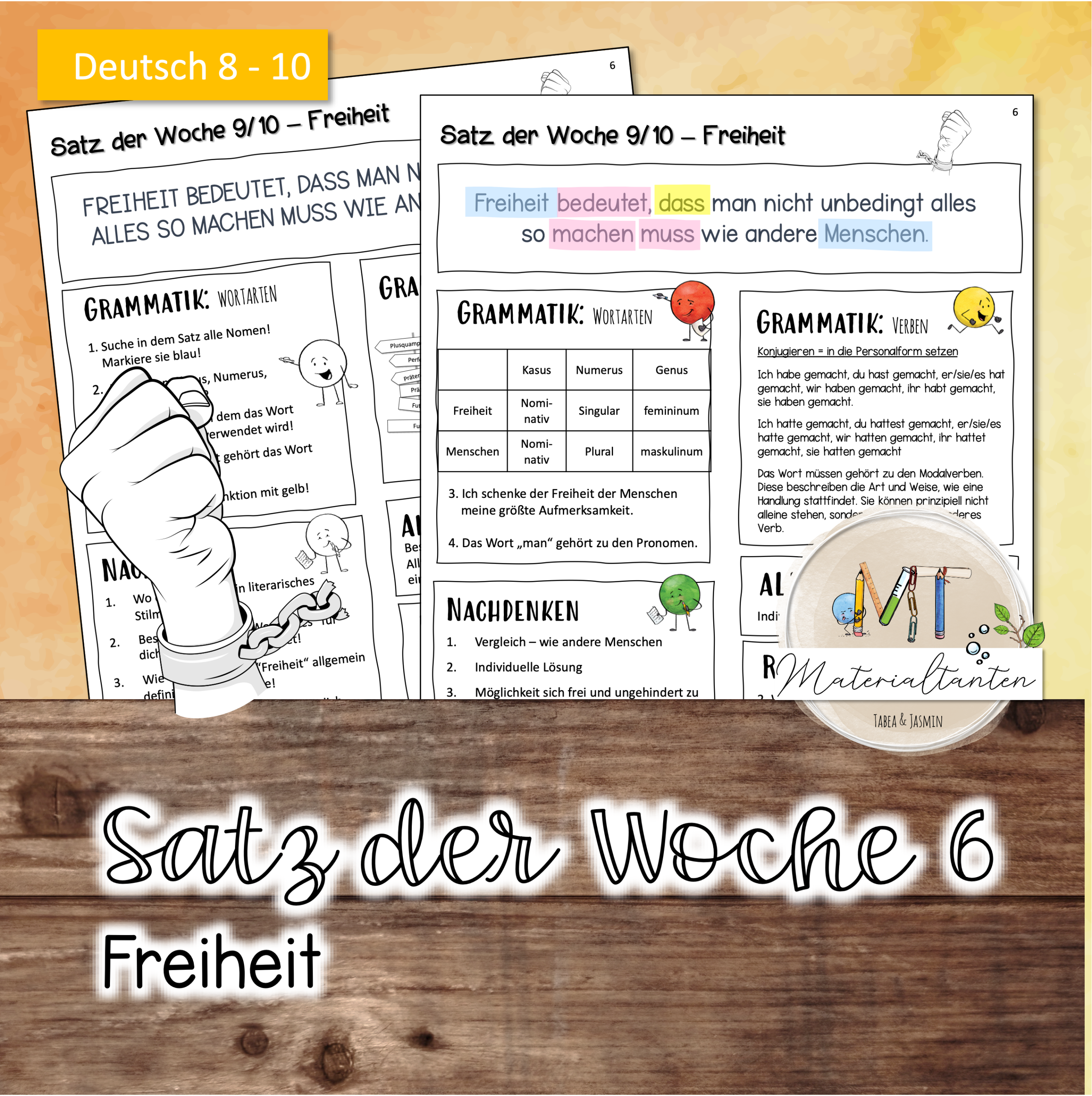 Die Sätze der Woche von 1-10 haben als grammatikalischen Schwerpunkt die Wortarten. In den folgenden Sätzen werden dann auch die Satzglieder berücksichtigt.