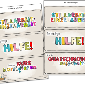 Diese praktischen Tischschilder unterstützen dich dabei, eine ruhige und selbstständige Lernatmosphäre in deiner Klasse zu schaffen. Sie helfen deinen Schüler*innen, ihre Bedürfnisse klar zu signalisieren und ihre Konzentration zu verbessern.